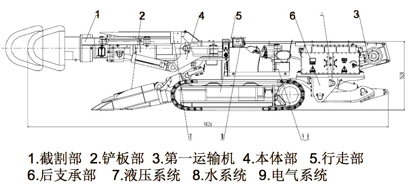 懸臂式掘進(jìn)機(jī)是一種能夠?qū)崿F(xiàn)截割、裝載運(yùn)輸、自行走及噴霧除塵的聯(lián)合機(jī)組。隨著回采工作面綜合采煤機(jī)械化的快速發(fā)展,煤礦對(duì)巷道掘進(jìn)速度要求越來越高。為了提高采準(zhǔn)巷道的速度,懸臂式掘進(jìn)機(jī)被大力研制并逐步發(fā)展完善。懸臂式掘進(jìn)機(jī)要同時(shí)實(shí)現(xiàn)剝離煤巖、裝載運(yùn)出、機(jī)器本身的行走調(diào)動(dòng)以及噴霧除塵等功能,即集切割、裝載、運(yùn)輸、行走于一身。它主要由切割機(jī)構(gòu)、裝載機(jī)構(gòu)、運(yùn)輸機(jī)構(gòu)、行走機(jī)構(gòu)、機(jī)架及回轉(zhuǎn)臺(tái)、液壓系統(tǒng)、電氣系統(tǒng)、冷卻滅塵供水系統(tǒng)以及操作控制系統(tǒng)等組成。