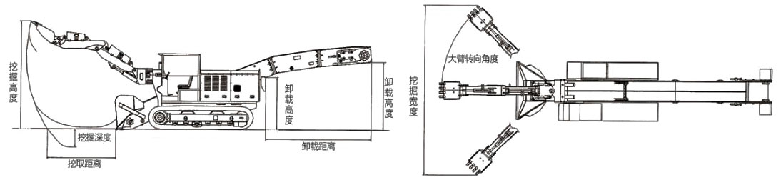 扒渣機配備銑挖頭后,可在硬度4F的煤巷或半煤巷掘進時工作,無需炮掘。本機帶有快速連接器,巖巷掘進時挖斗和銑挖頭互換,爆破后用挖斗裝渣,實現(xiàn)了一機兩用;主要液壓件采用德國進口正齒輪變速箱,由高扭矩的液壓馬達驅(qū)動,使銑挖頭在更惡劣的高負荷作業(yè)條件下應付自如。配有內(nèi)噴霧及高壓外噴霧裝置,滅塵效果好;使整機足夠的重量,截割巖石時機身穩(wěn)定。